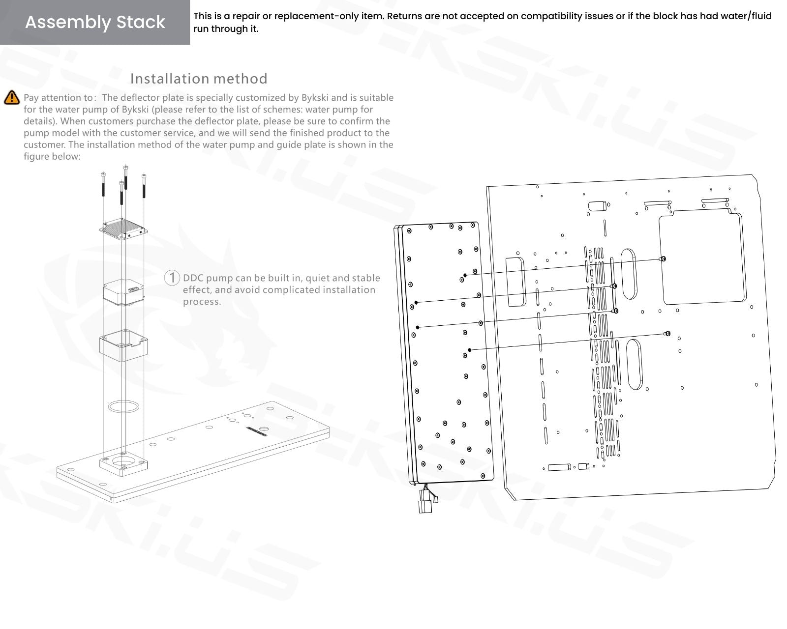 In addition to the Distro Plate itself, the package includes mounting hardware, an A-RGB (RBW) LED strip, and the option of including a DDC pump with armor, a DDC pump with LCD, or no pump at all. Bykski Distro Plates are an excellent option for those looking for a clean, visually appealing water-cooling solution that provides high-quality performance.