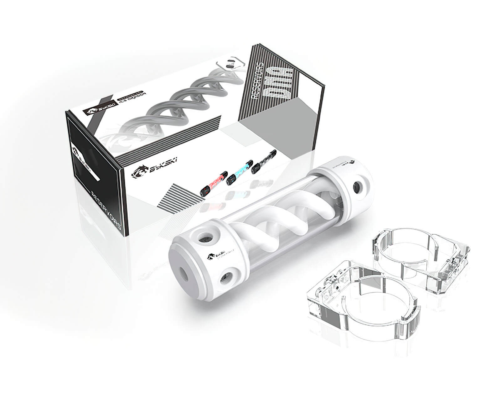Bykski 50mm Cylindrical DNA Reservoir - White POM - 190mm w/LED strip (CT-DNA-POM-V2)
