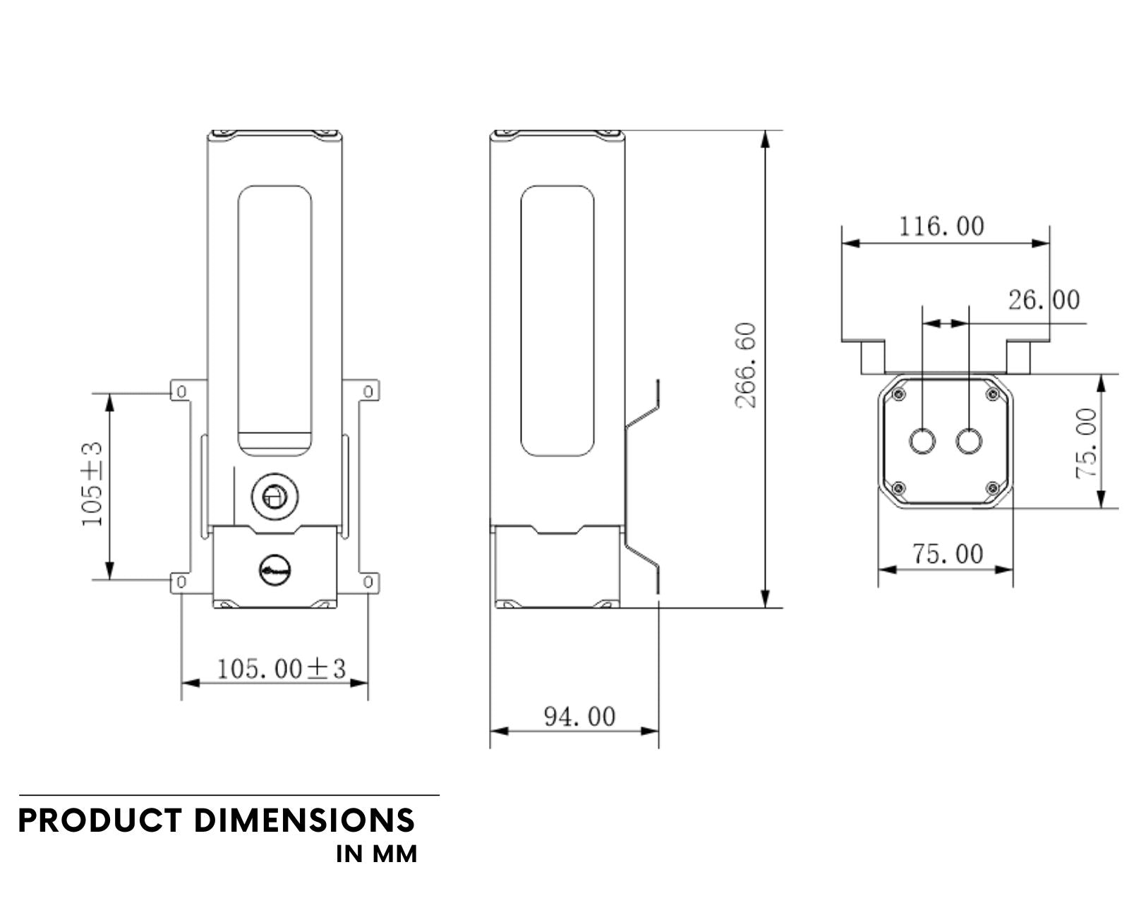 - Height: 266mm (total)
