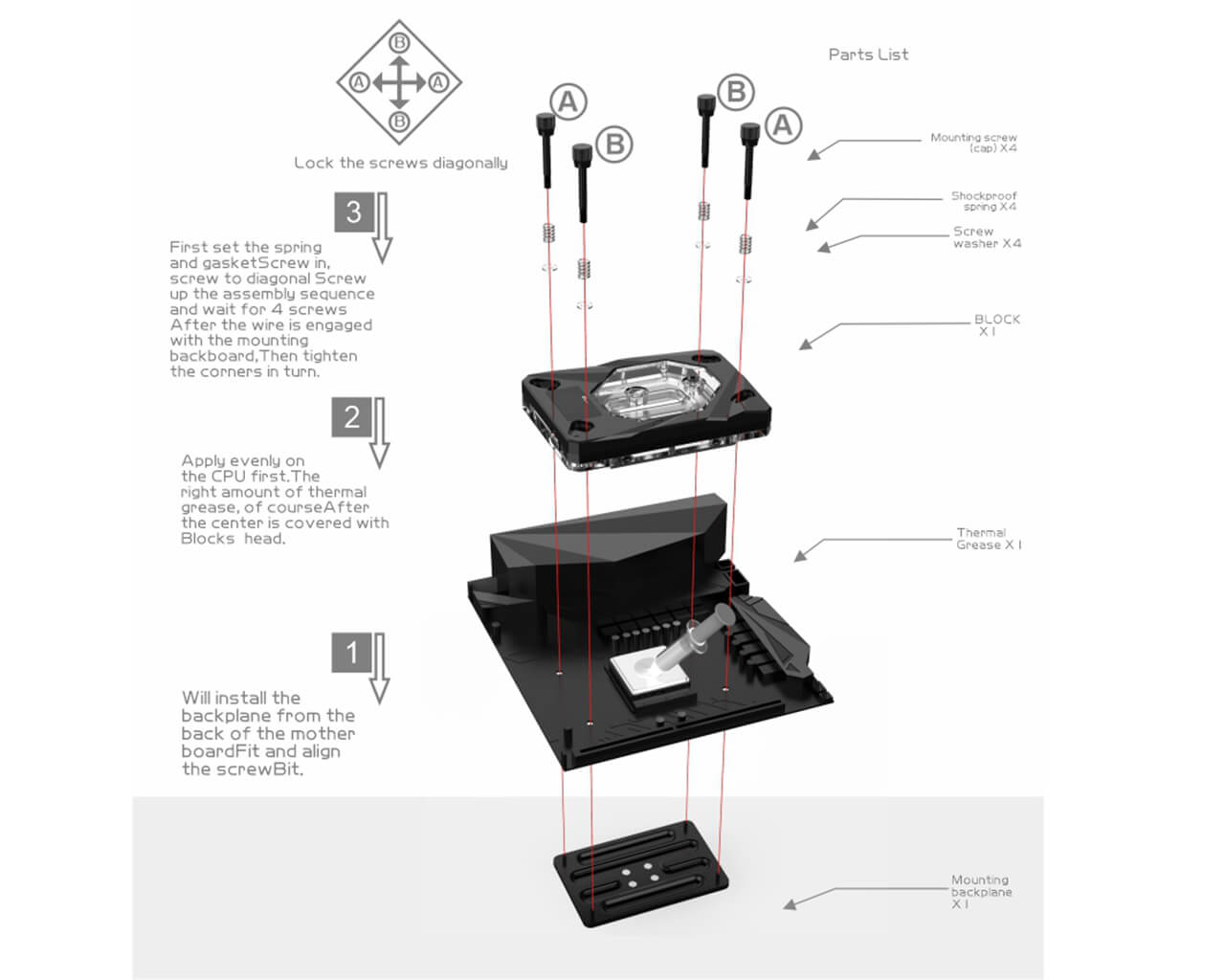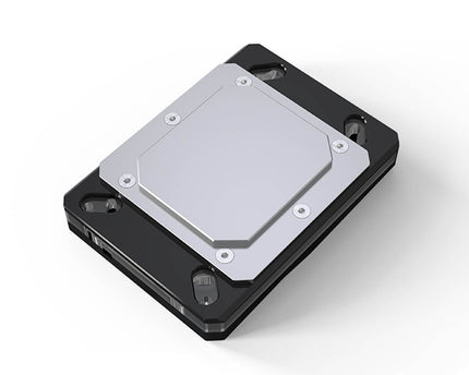 The block base is electroplated to prevent oxidation. The top is highly polished PMMA with a black accent cover that isn't in contact with coolant. A high flow design is achieved using 0.5mm channels. This creates good heat dissipation and allows for maximum performance.