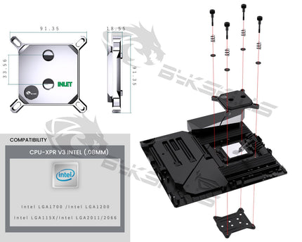 Bykski CPU-XPR-I-V3 High-Performance CPU Water Cooling Block - Featuring Aggressive 0.08mm Fins - Sturdy Mounting Construction with Elite Cooling - for Intel LGA 1200/1700 - 115x - 2011/2066