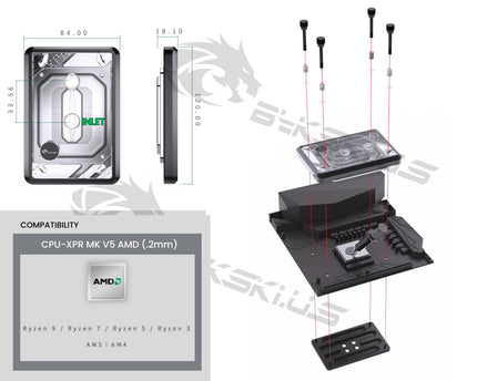 Bykski CPU-XPR-MK-M-V5 High-Efficiency CPU Water Cooling Block - Featuring High Flow Optimized 0.2mm Fins - Full PMMA Mounting w/ 5v Addressable RGB - for AMD Ryzen 3/5/7/9 (AM4/AM5)