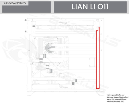 This distro is designed specifically for this case. Depending on the motherboard, blocks, fittings used, and layout, the connecting tubing may not appear as pictured (perfectly horizontal). Not responsible for any hardware damage. Use at your own risk.