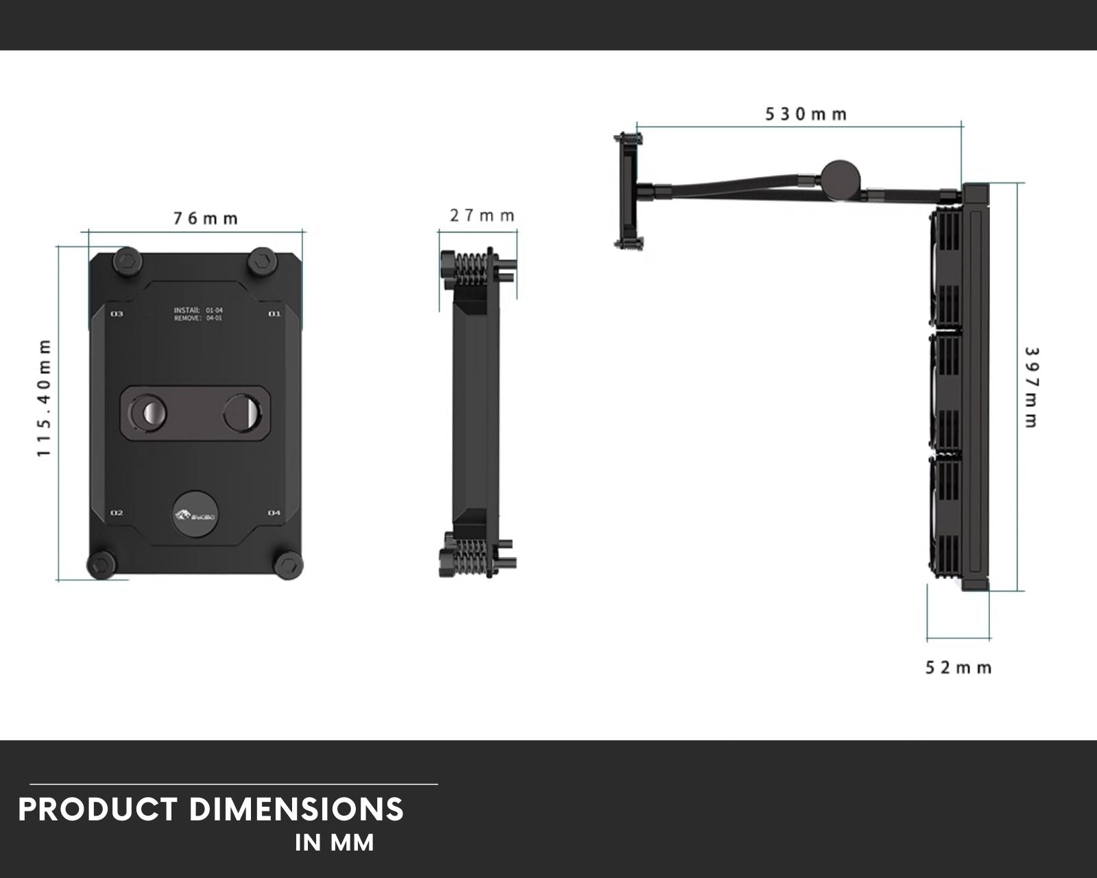 - Bykski 3x120mm Server AIO Liquid CPU Cooler (radiator, pump, tubing, and waterblock pre-assembled)