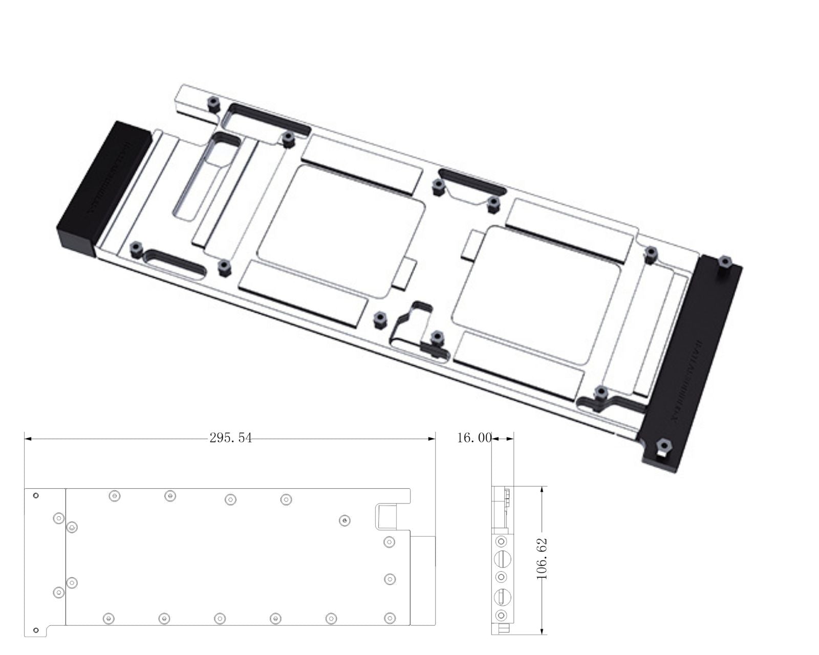 - Backplate Material: Black Anodized Aluminum (not in contact with coolant)