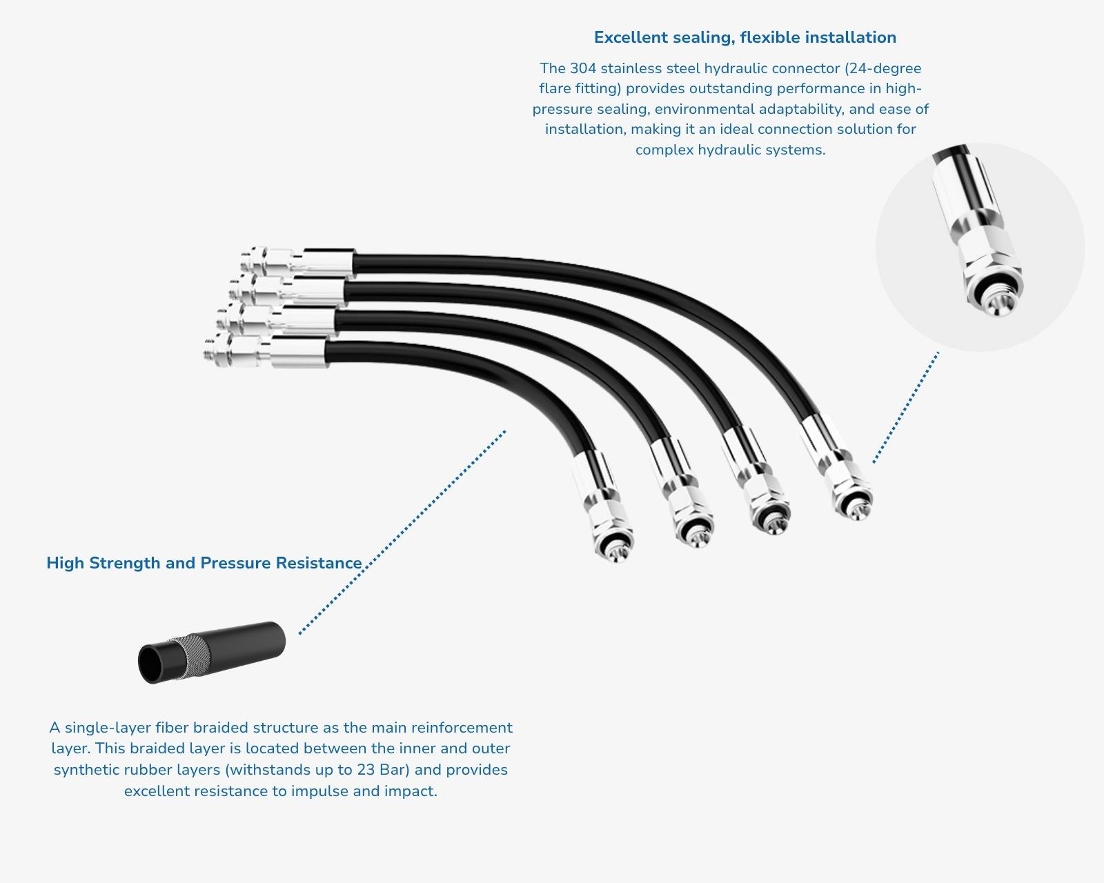 - Material: Single-layer fiber braided/Synthetic rubber