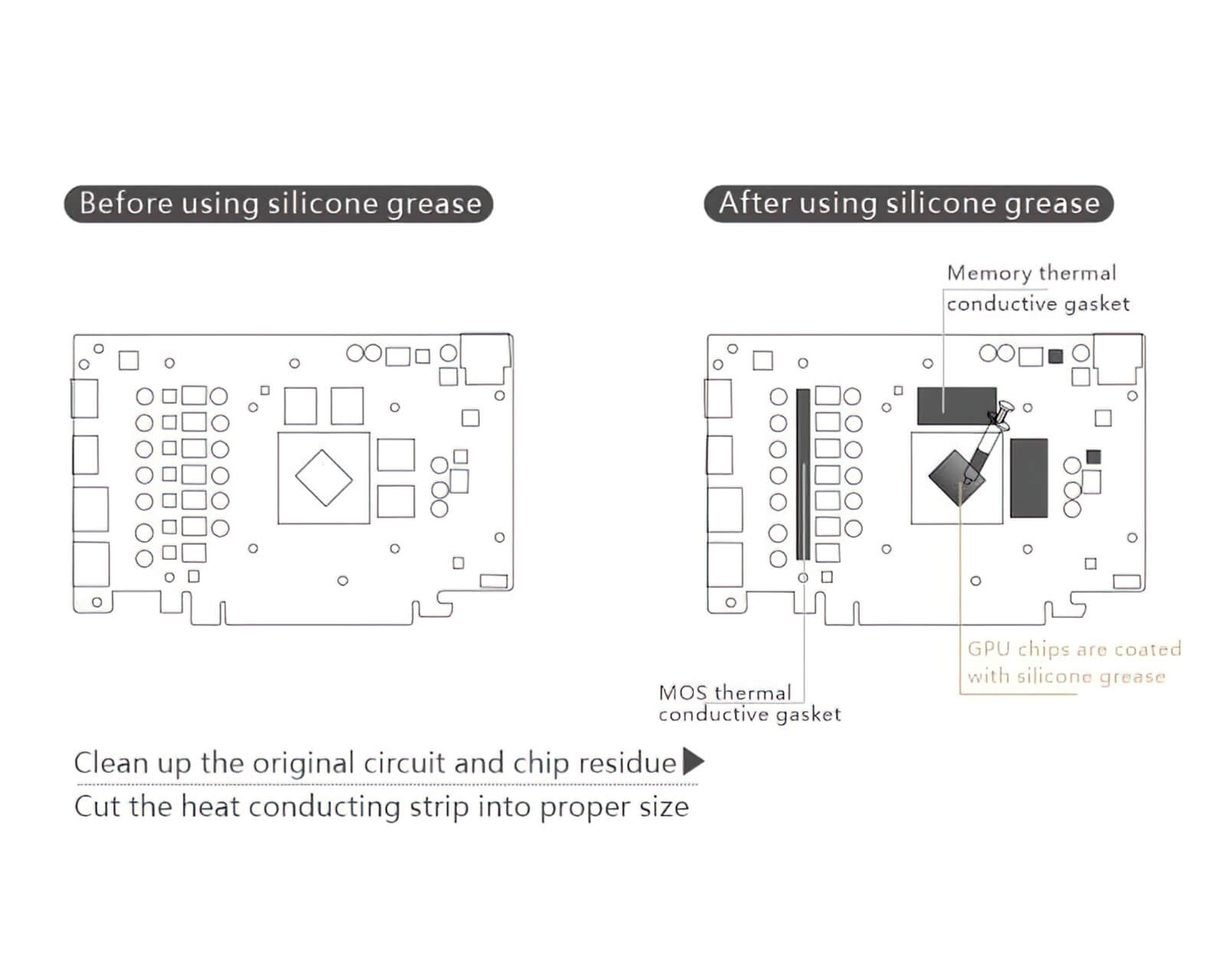 Manufacturer reserves right to alter block design to expand compatibility. Delivered item may not 100% match pictured item. Product does NOT come with English instructions. Please see product gallery images for install guide if available. Generally, thermal pads should be installed on the card where the block has corresponding raised contact points with the exception of the GPU core, which uses thermal paste. Installing pads on other components can lead to improper contact and poor performance.