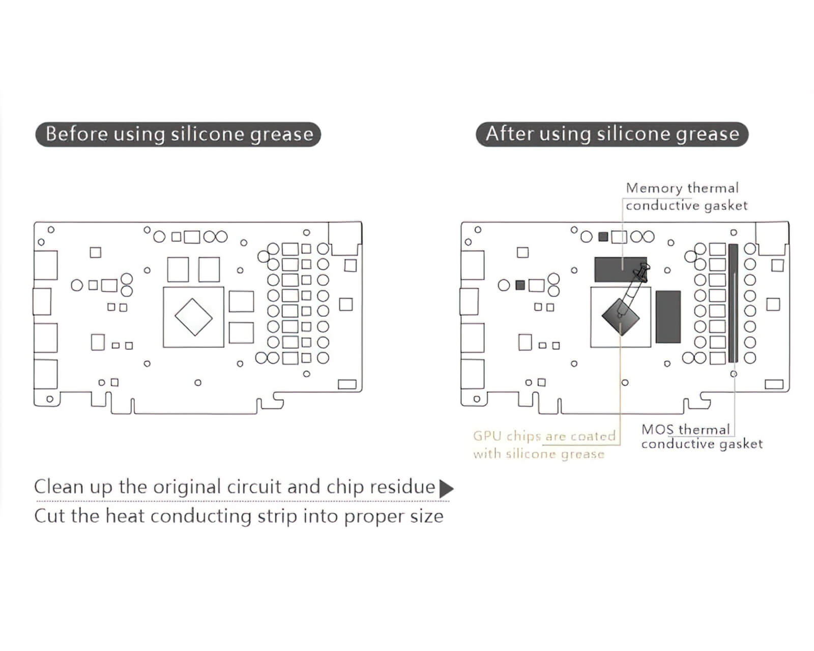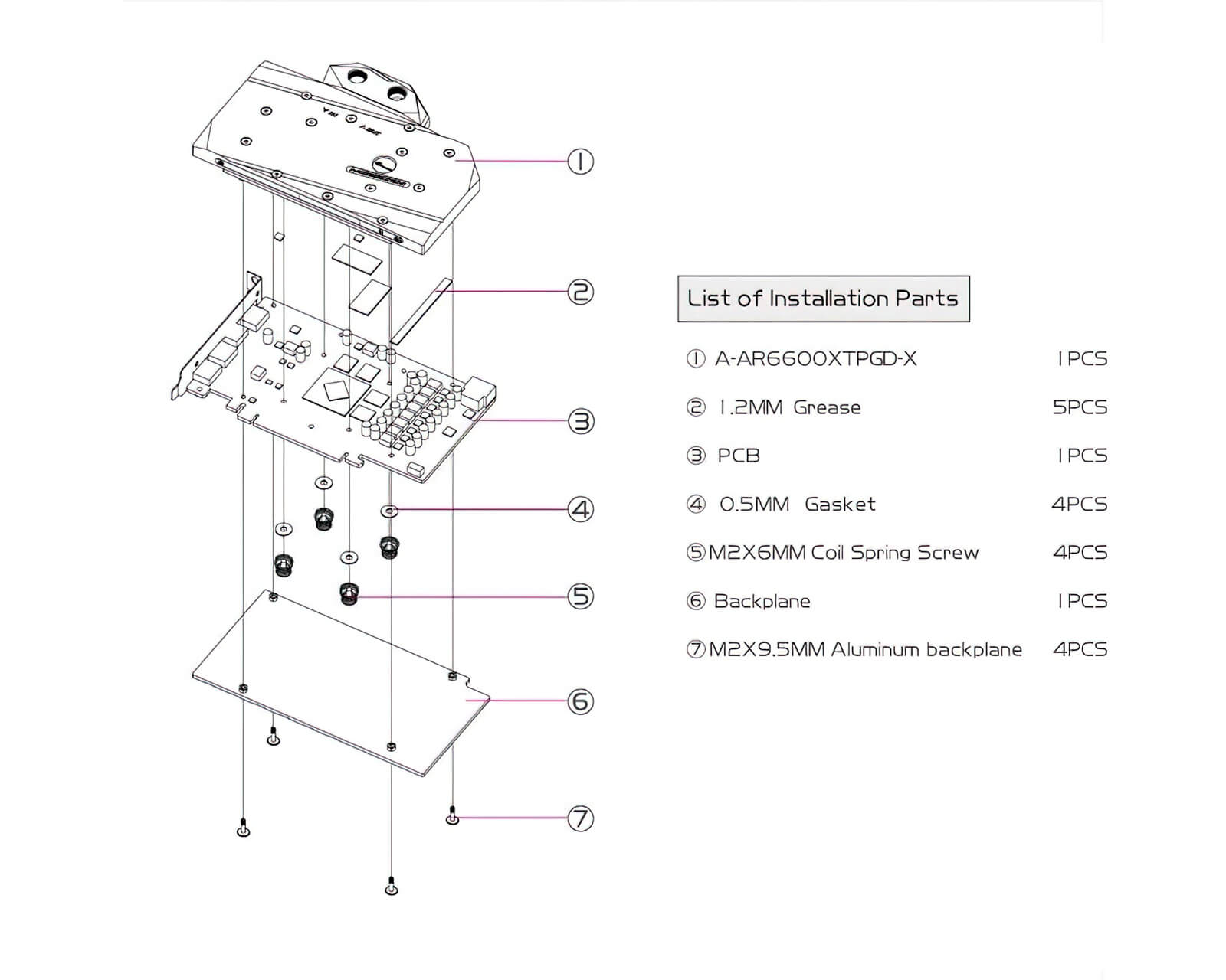 Manufacturer reserves right to alter block design to expand compatibility. Delivered item may not 100% match pictured item. Product does NOT come with English instructions. Please see product gallery images for install guide if available. Generally, thermal pads should be installed on the card where the block has corresponding raised contact points with the exception of the GPU core, which uses thermal paste. Installing pads on other components can lead to improper contact and poor performance.