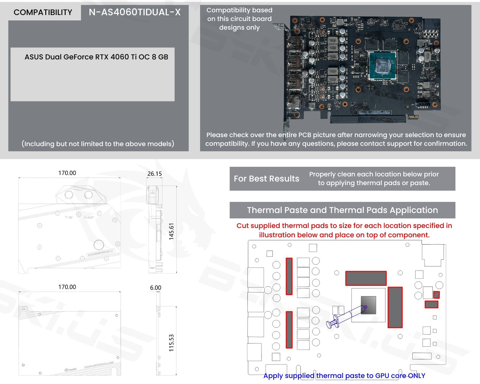 - Compatible with ASUS Dual GeForce RTX 4060 Ti OC 8GB (NOT compatible with 16GB)
