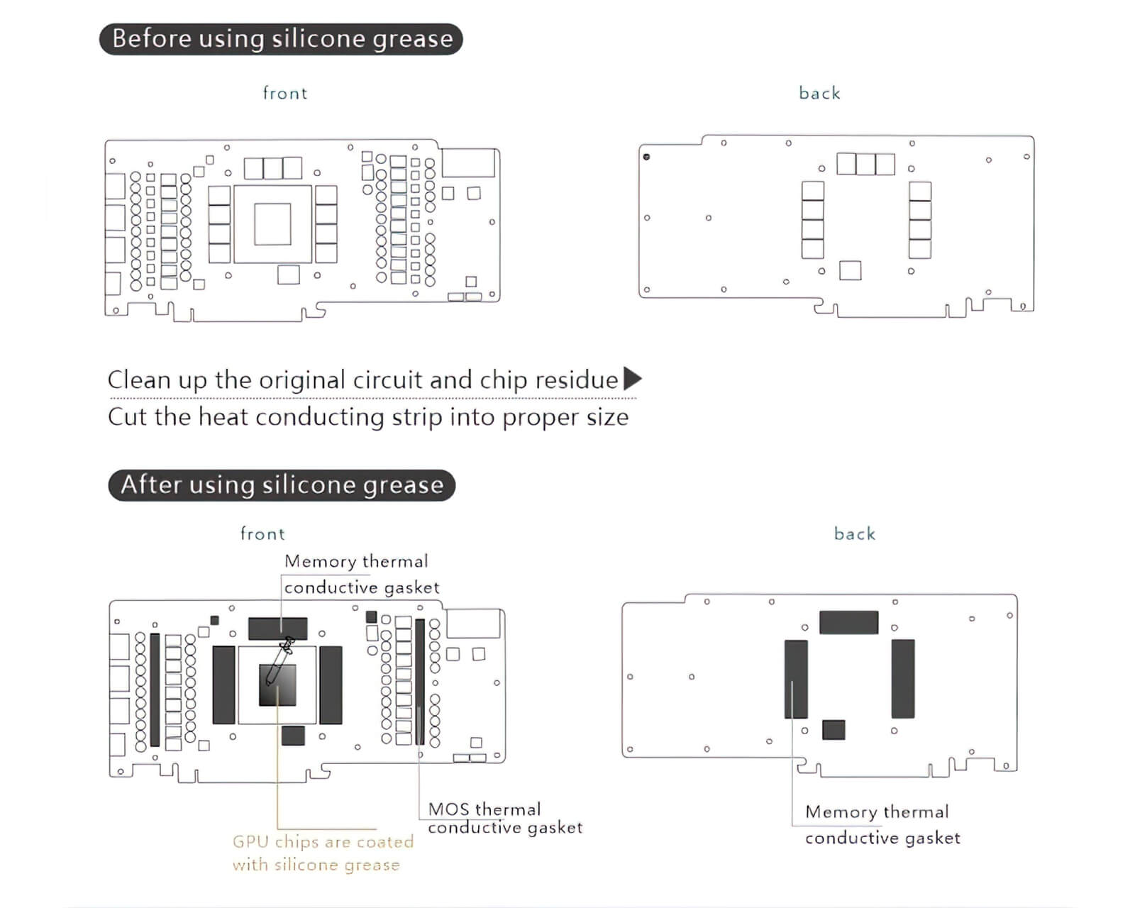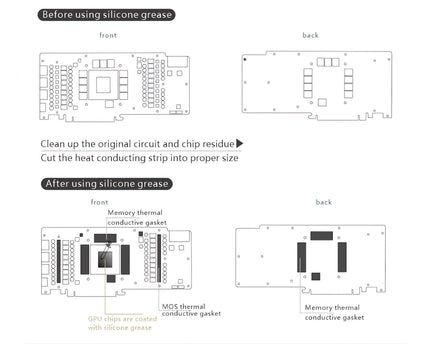 Manufacturer reserves right to alter block design to expand compatibility. Delivered item may not 100% match pictured item. Product does NOT come with English instructions. Please see product gallery images for install guide if available. Generally, thermal pads should be installed on the card where the block has corresponding raised contact points with the exception of the GPU core, which uses thermal paste. Installing pads on other components can lead to improper contact and poor performance.