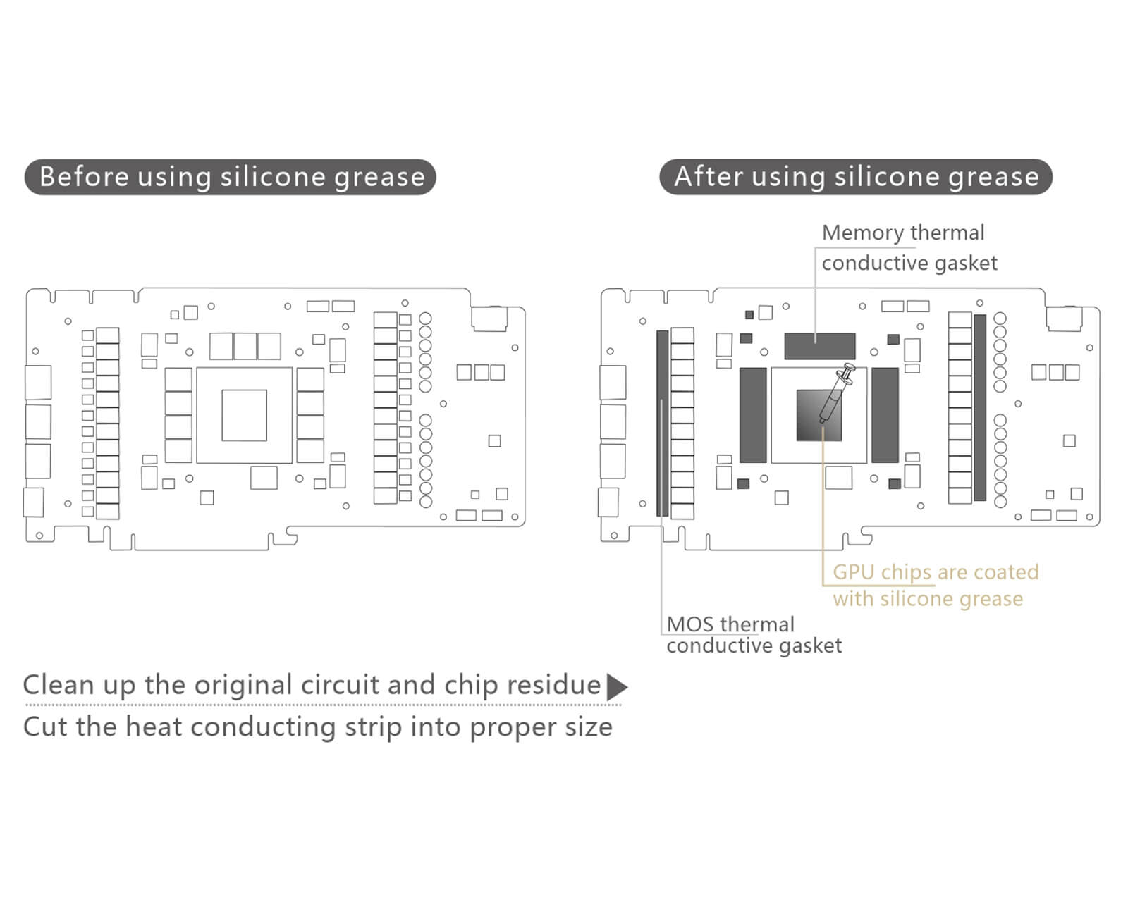 Manufacturer reserves right to alter block design to expand compatibility. Delivered item may not 100% match pictured item. Product does NOT come with English instructions. Please see product gallery images for install guide if available. Generally, thermal pads should be installed on the card where the block has corresponding raised contact points with the exception of the GPU core, which uses thermal paste. Installing pads on other components can lead to improper contact and poor performance.
