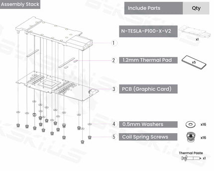 Bykski Metal/POM GPU Water Block and Backplate For NVIDIA TESLA-P100 (N-TESLA-P100-X-V2)