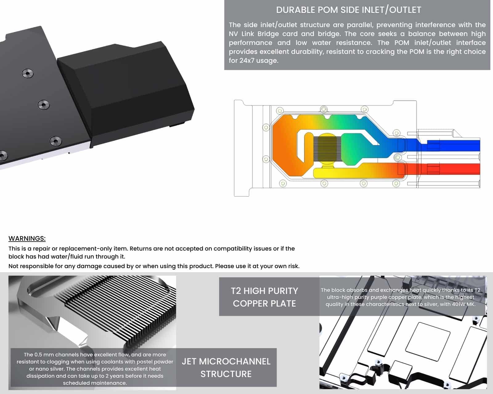 This is a repair or replacement-only item. Returns are not accepted on compatibility issues or if the block has had water/fluid run through it.