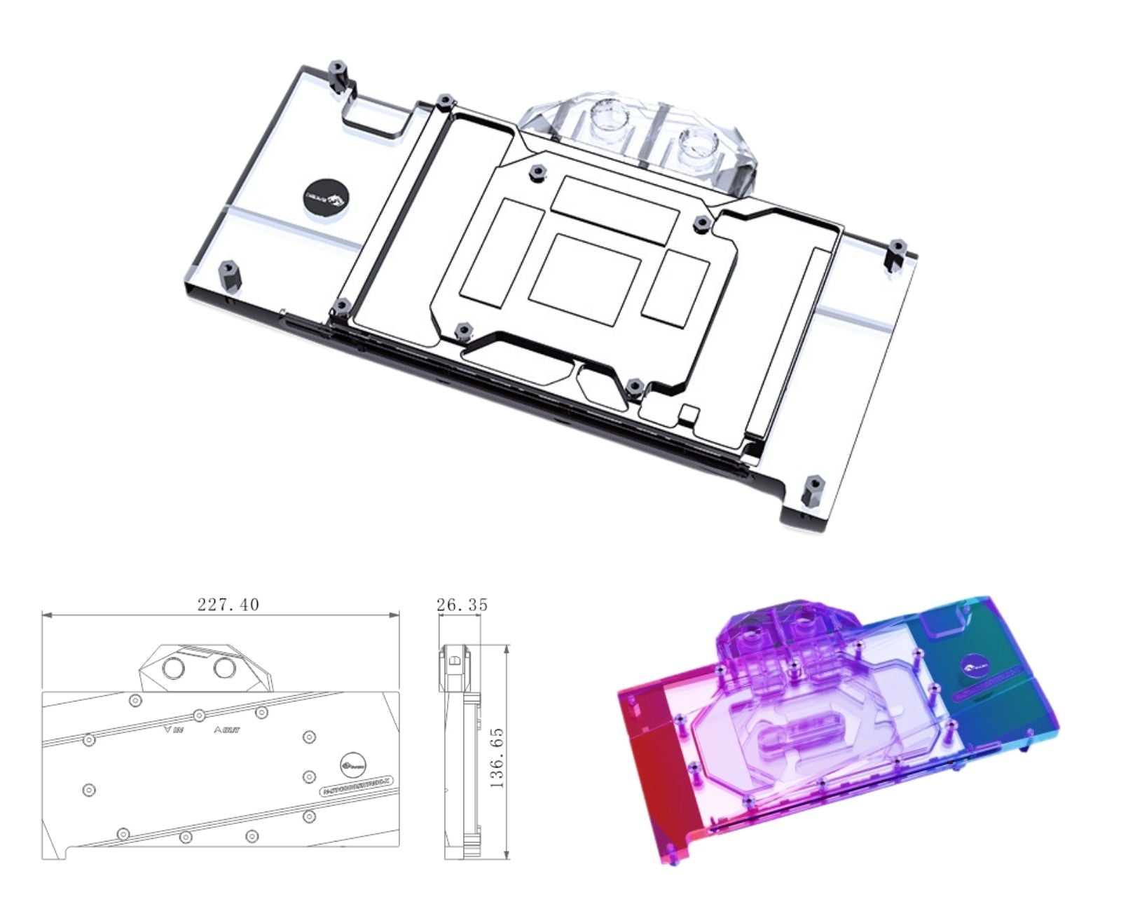 - Block Material: Nickel Electroplated High Purity Copper / PMMA (Acrylic)