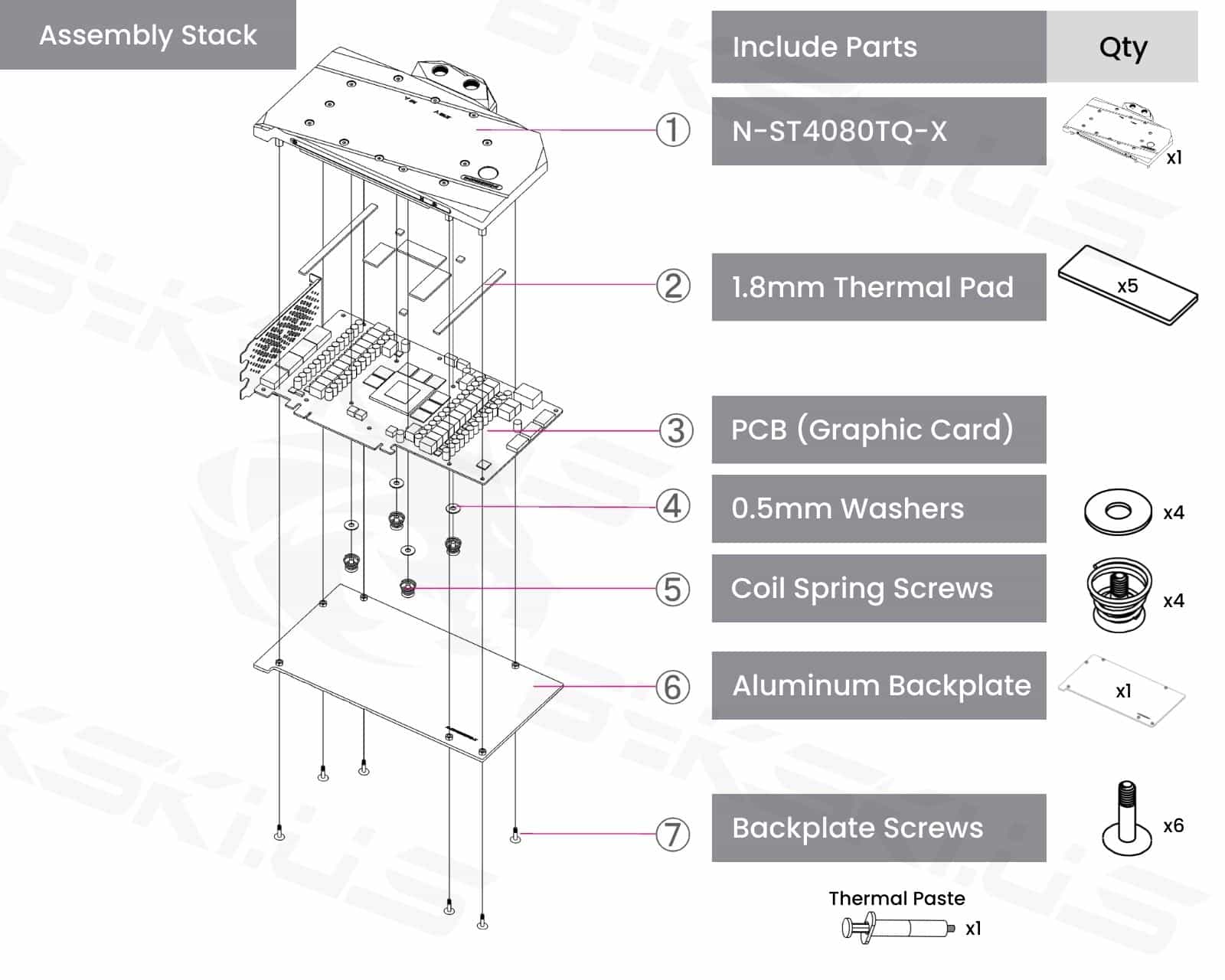 The manufacturer reserves the right to alter the block design to expand compatibility. The delivered item may not 100% match the pictured item. The product does NOT come with English instructions. Please see the product gallery images for the install guide if available. Generally, thermal pads should be installed on the card where the block has corresponding raised contact points, except the GPU core, which uses thermal paste. Installing pads on other components can lead to improper contact and poor performance.