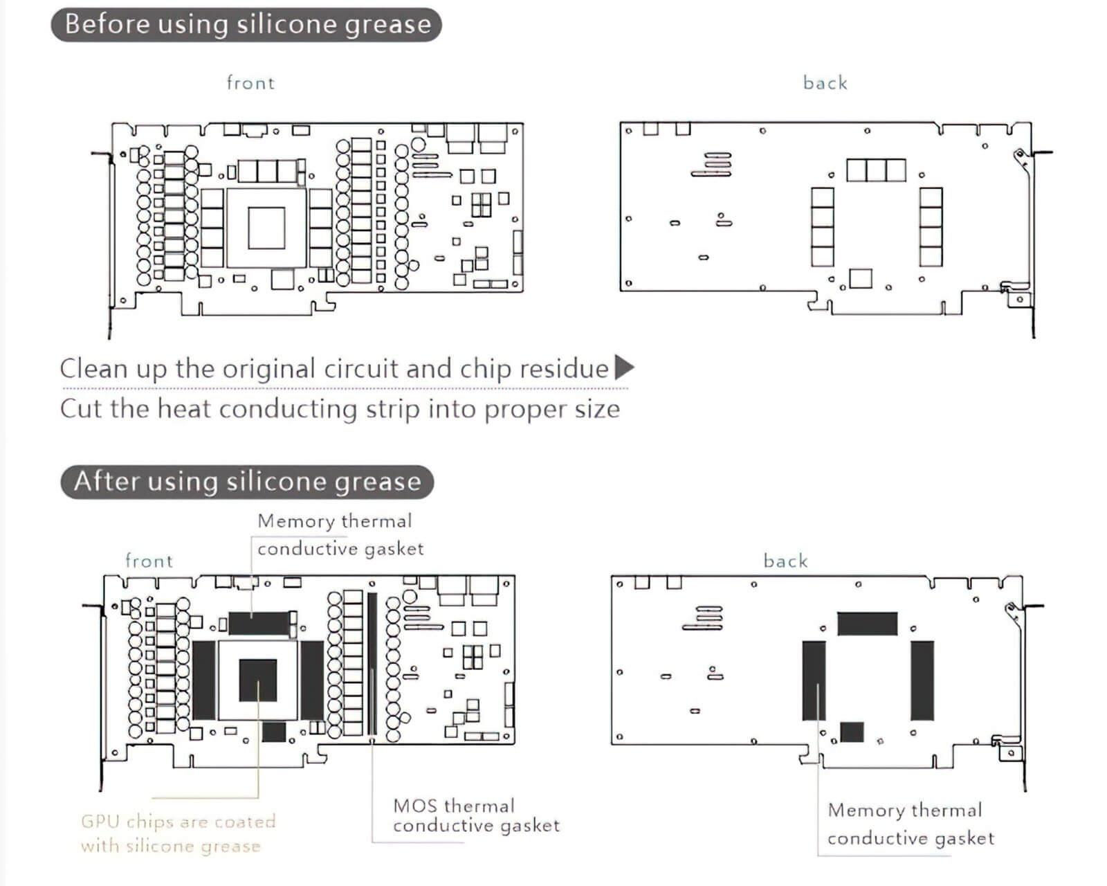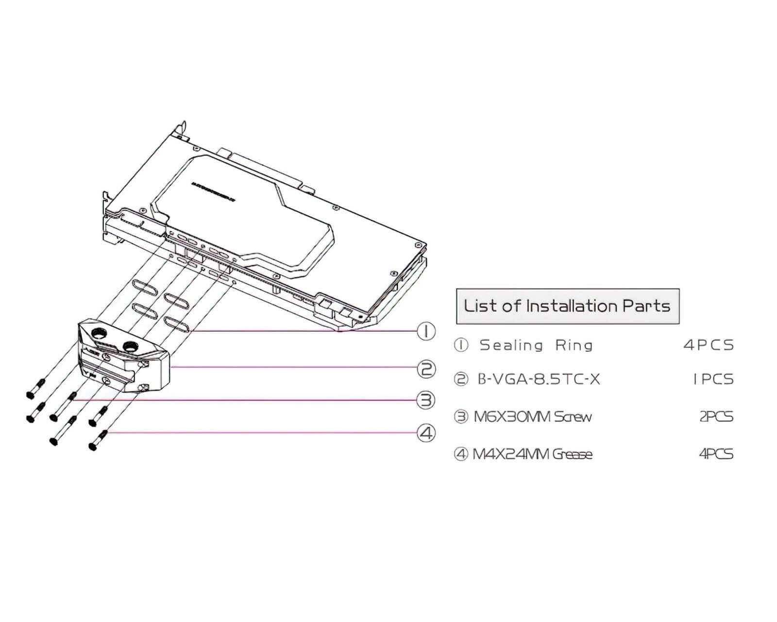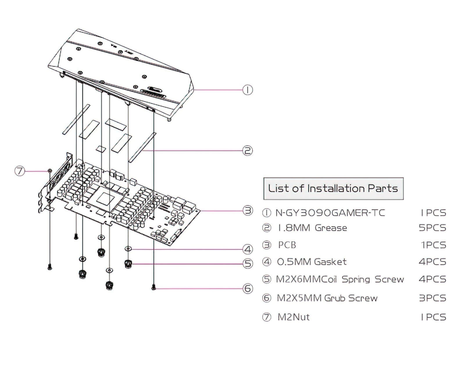 Manufacturer reserves right to alter block design to expand compatibility. Delivered item may not 100% match pictured item. Product does NOT come with English instructions. Please see product gallery images for install guide if available. Generally, thermal pads should be installed on the card where the block has corresponding raised contact points with the exception of the GPU core, which uses thermal paste. For -TC SKU blocks with active backplates, the VRAM on the back of the card should be padded. Installing pads on other components can lead to improper contact and poor performance.