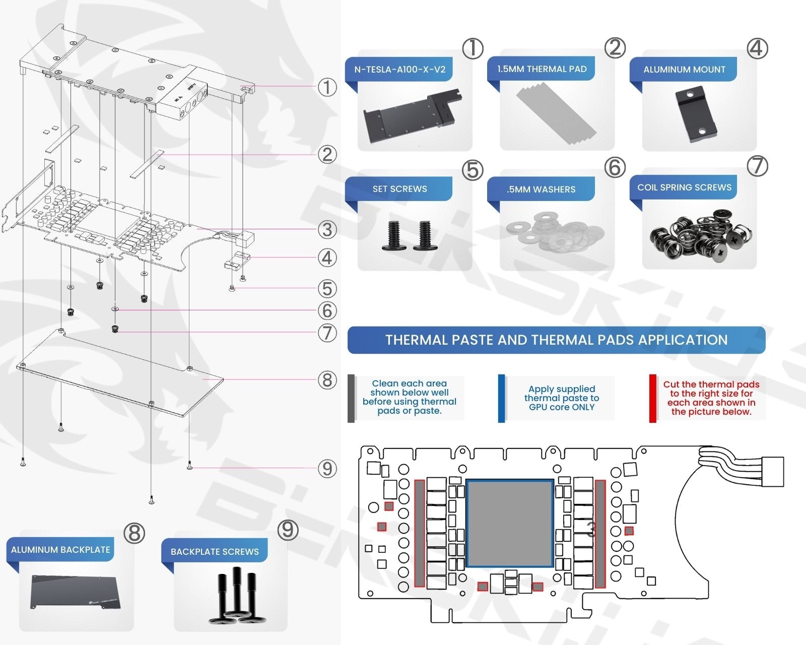 Bykski Metal/POM GPU Water Block and Backplate For NVIDIA TESLA A100 40GB - (N-TESLA-A100-X-V2) - Continuous Usage