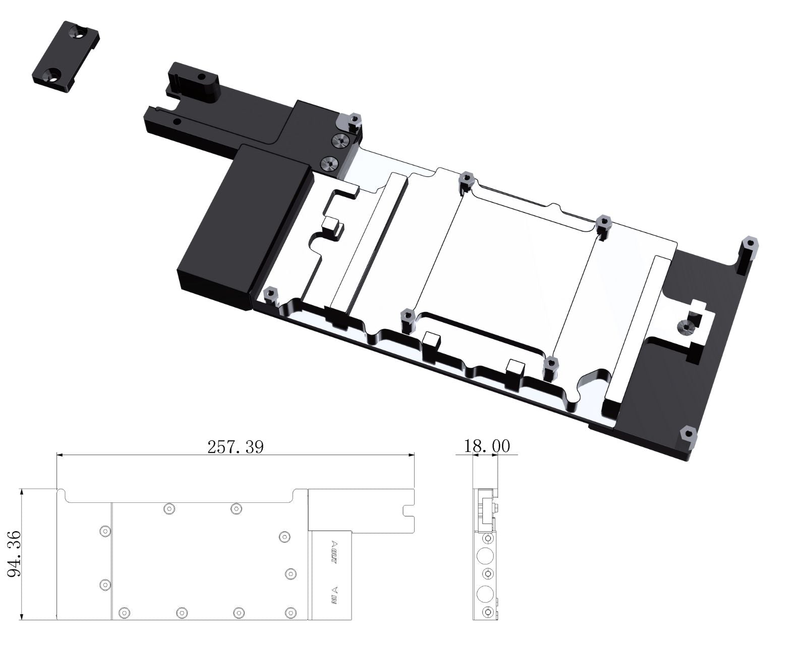 - Backplate Material: Black Anodized Aluminum (not in contact with coolant)