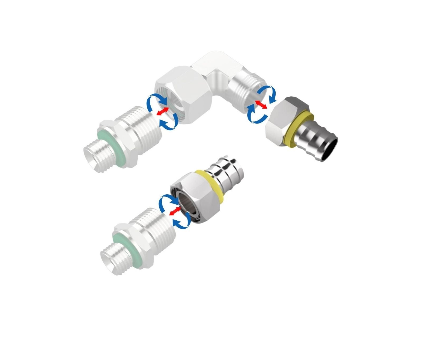 A precision-machined, high-flow interior helps minimize restriction in complex loop layouts. The coupler supports straight-through routing and can be used in series with other fittings. For multi-fitting assemblies, additional adapters or bridges may be required depending on your configuration.
