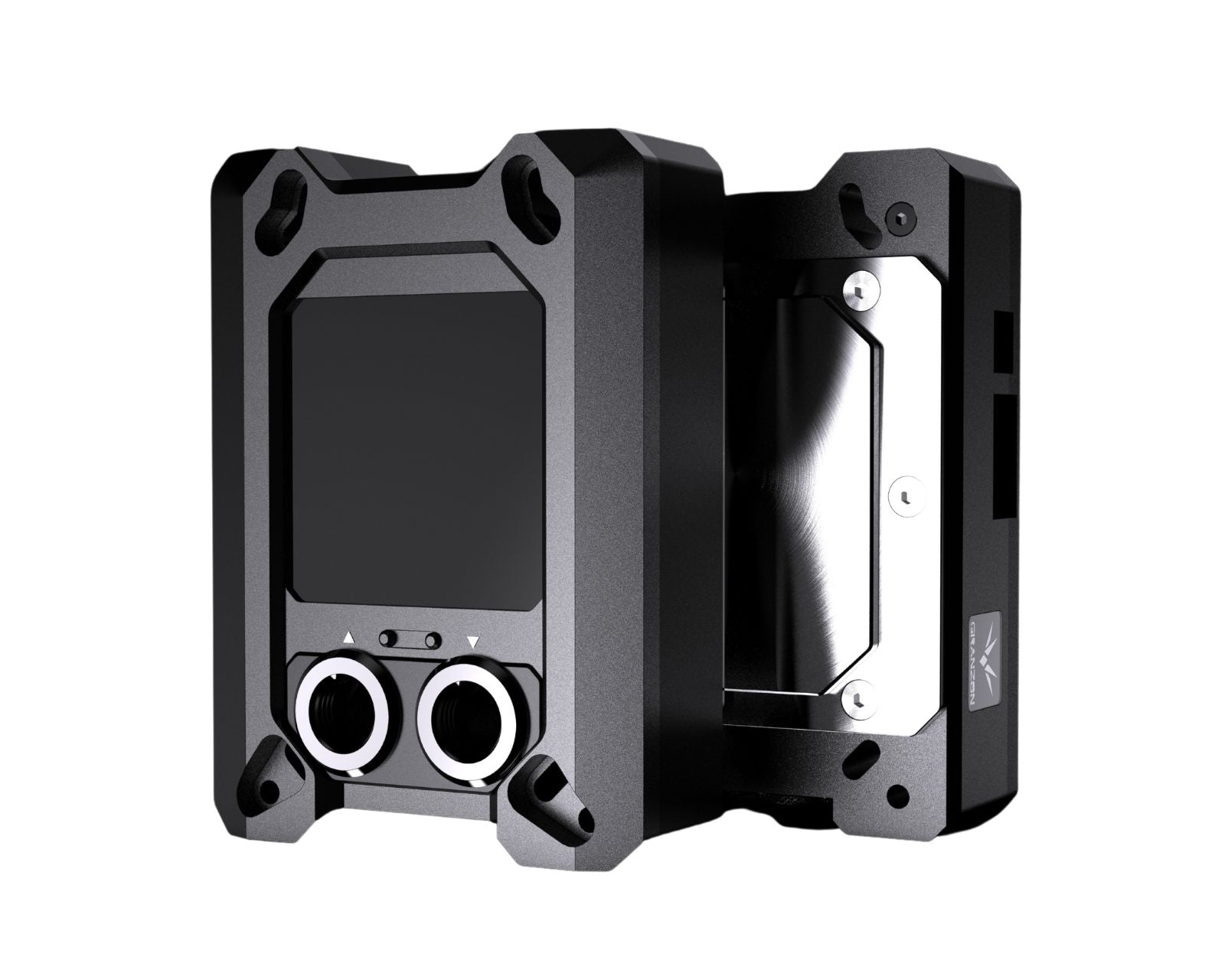 The Granzon GAMSC CPU Water Cooling Block boasts a discreet real-time temperature display. This innovative feature is seamlessly integrated into the block's top surface, concealed beneath a reflective finish. Upon activation, the display presents the current temperature in a sleek and futuristic sports car dashboard format.