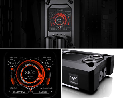 The Granzon GAMSC CPU Water Cooling Block boasts a discreet real-time temperature display. This innovative feature is seamlessly integrated into the block's top surface, concealed beneath a reflective finish. Upon...