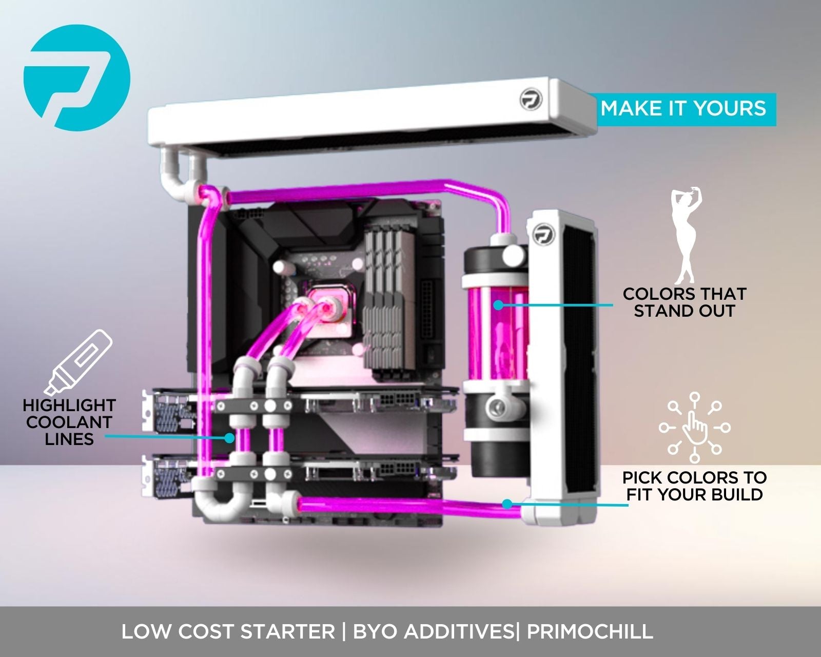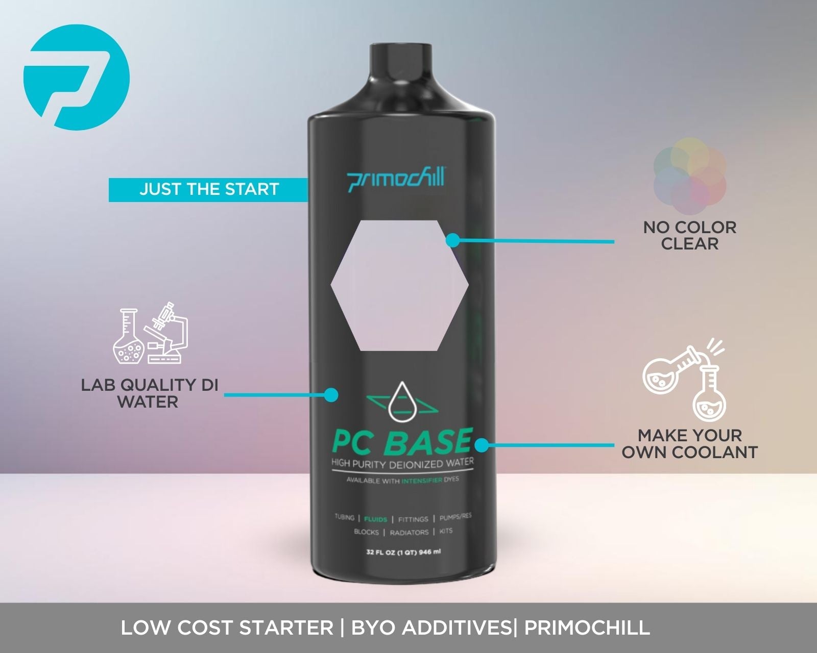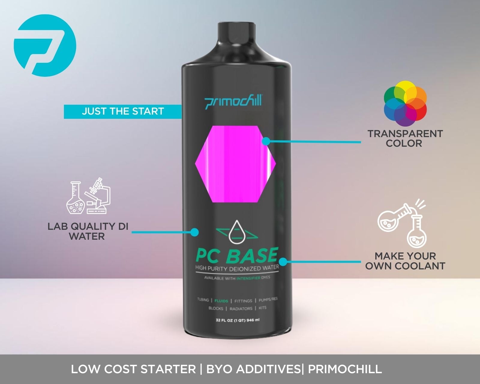 PrimoChill BASE High Purity Deionized Water creates an excellent starting point to develop your coolant. If you are looking for an affordable High Purity Deionized Water, Pre-dyed base, the ONLY solution is PC Base.