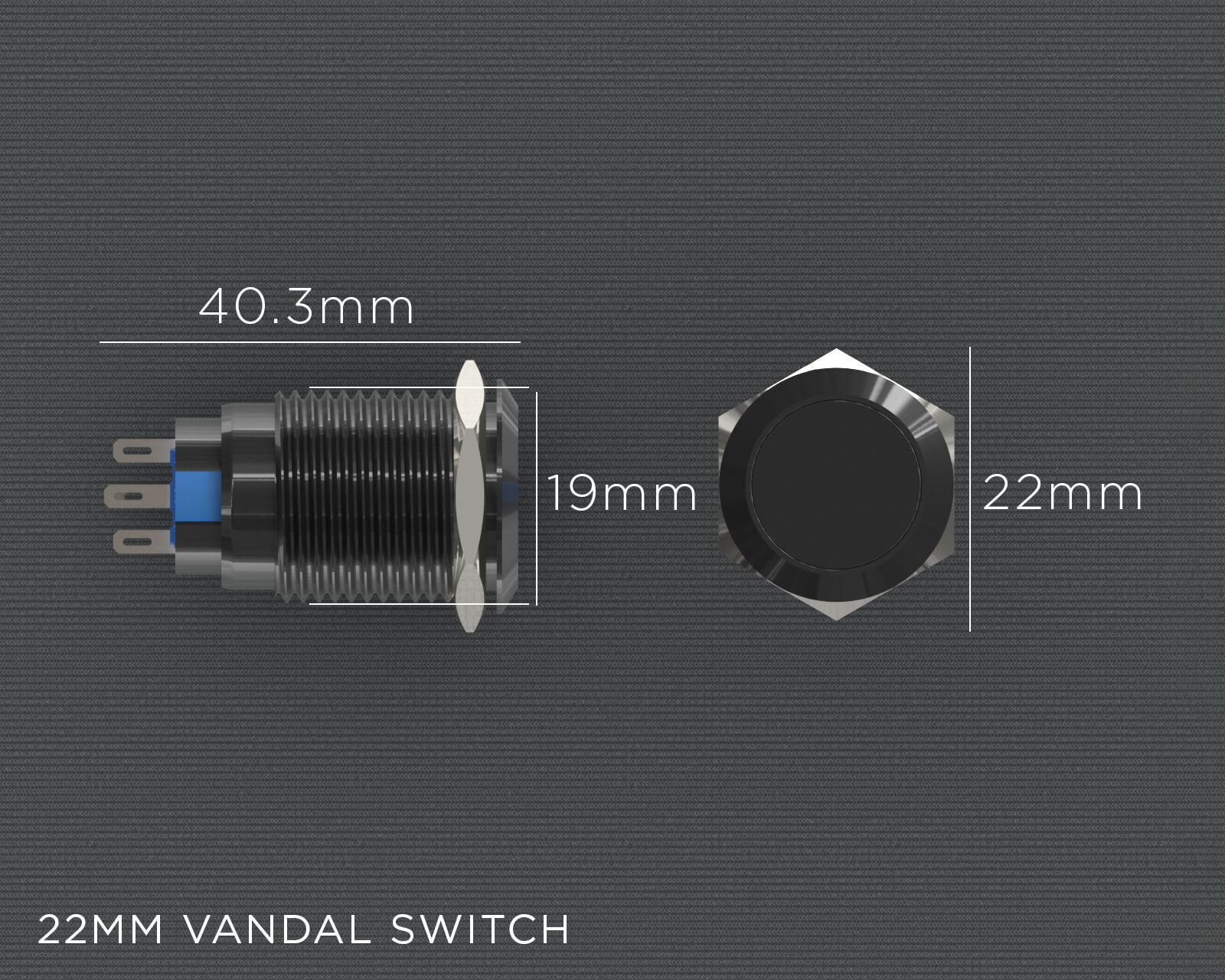 The Black Aluminum Latching Vandal Resistant Switch is a latching switch that remains latched when pressed. Easy to install and will fit on a regular 5.25 drive cover or wherever you chose.