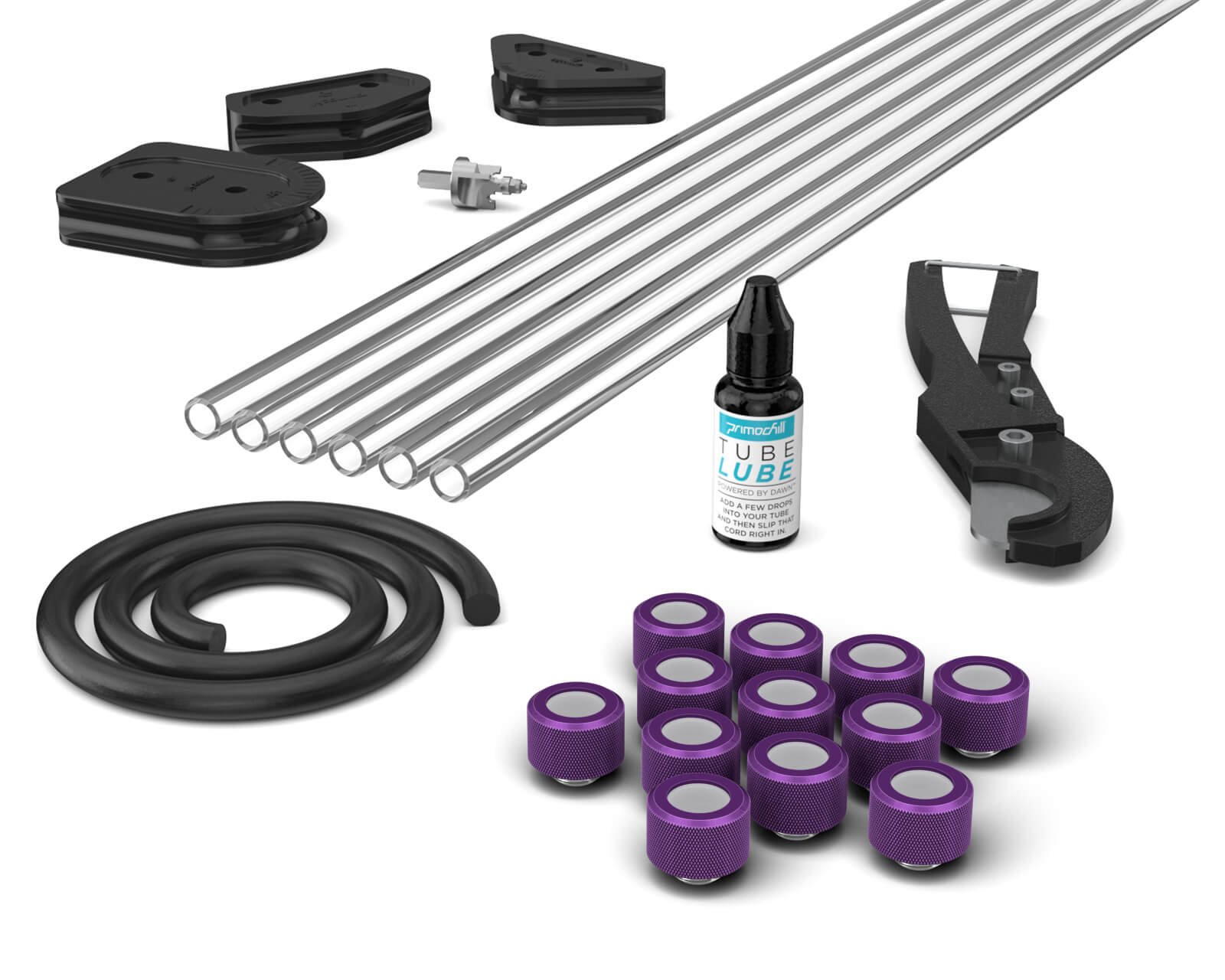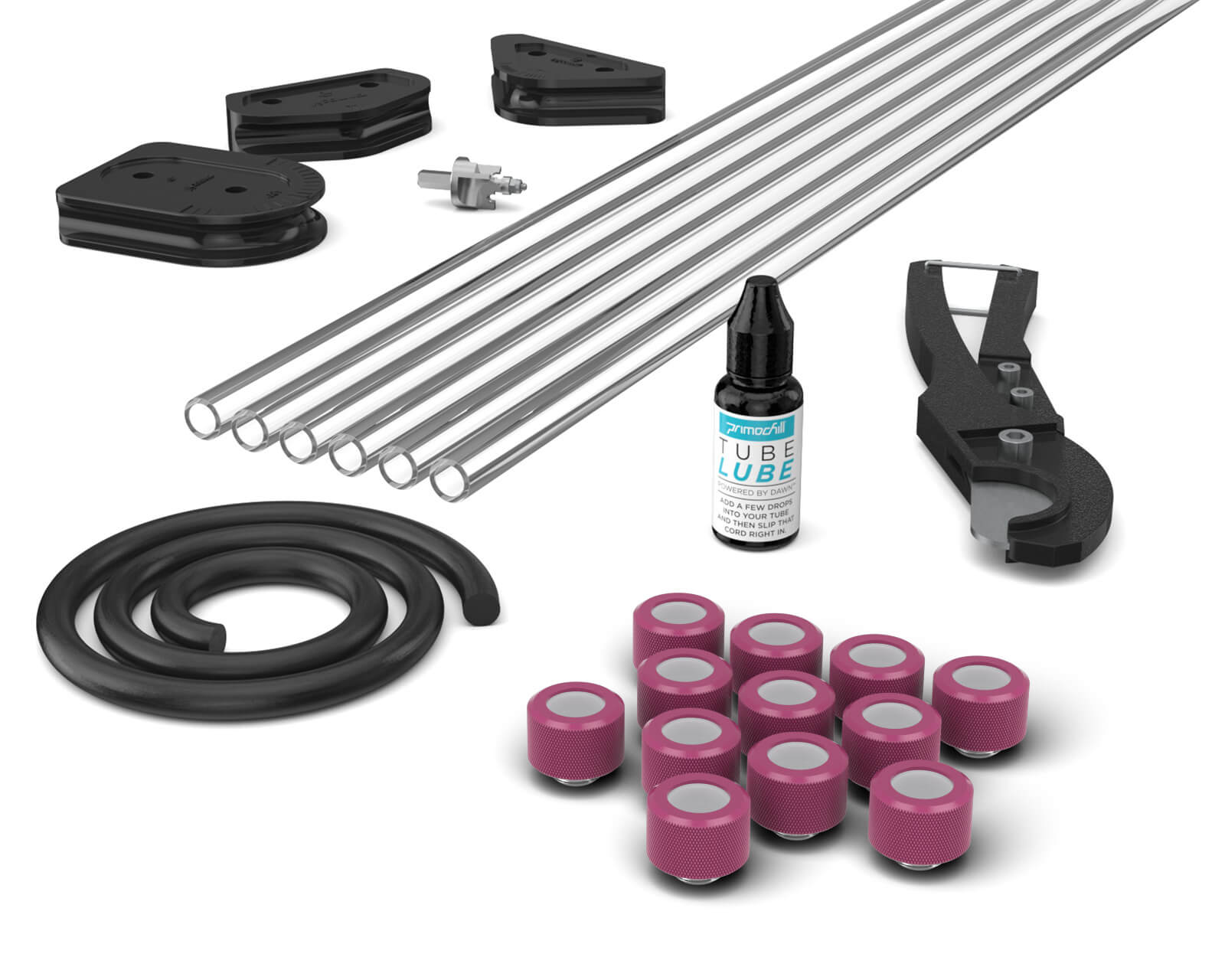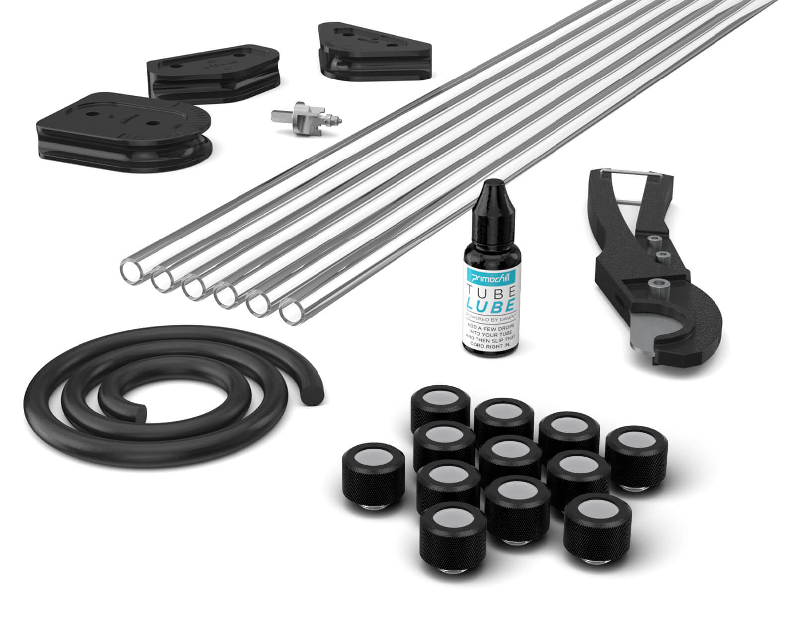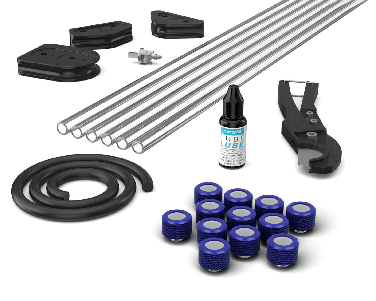 PrimoChill is making PETG as accessible as ever. Now we offer kits with metric sizes! Using this complete pack you have the PETG required for any system and twelve fittings to outfit most systems. Along with these you get a universal tube cutter for clean cuts and a bending insert with tube lube to prep your tube for bending. Also included in the Complete pack is a bending angle guide set to get perfect bends and a rigid finishing bit to smooth tubing ends and fine tune lengths. The fittings are available in the entire SX color line. Grab what you need at a discount and get building!