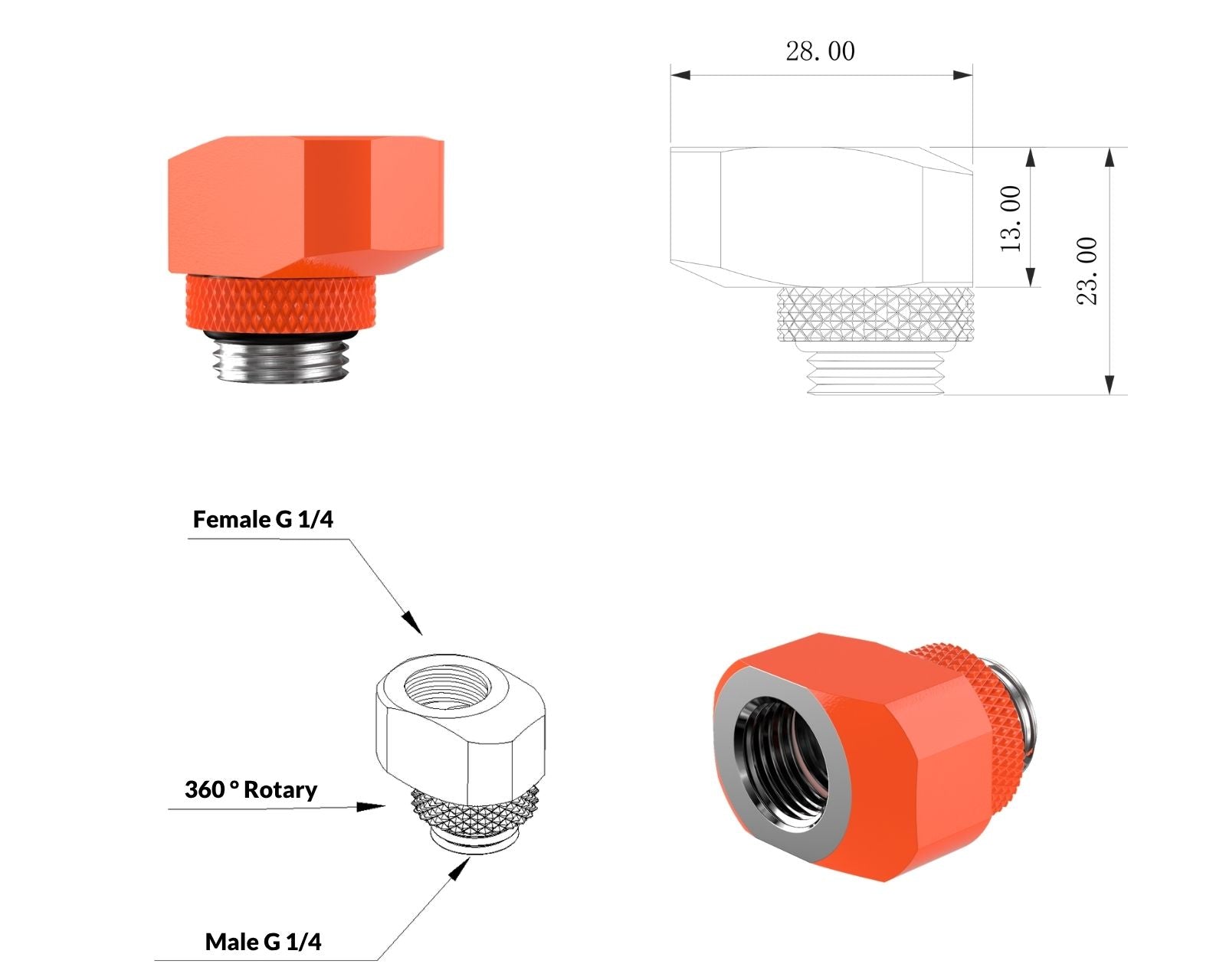 - 1x PrimoChill InterConnect SX Male to Female G 1/4in. Offset Full Rotary Fitting - 10mm