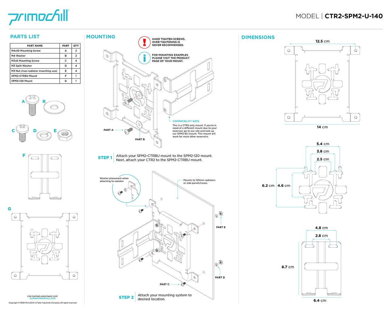 PrimoChill SX CTR2 Spider Mount Bracket Kit - 140mm Series