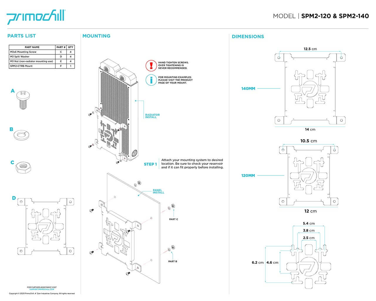 PrimoChill SX CTR Spider Mount Bracket - 120mm Series is an optional mounting plate for 120mm fan locations. This bracket enables you to mount a ton of items in various orientations on a 120mm fan/radiator location. The Spider Mount works on the bottom of cases and side panels. This bracket can be used to mount low profile CRT reservoirs, SFF reservoirs and combos, DDC pumps using the stock 54mm mounting pattern, and much more. The bracket uses a slotted mounting pattern design that allows for very flexible compatibility. The bracket has a sturdy SX powder coated finish that is easy to match to any theme with the huge selection of colors available.