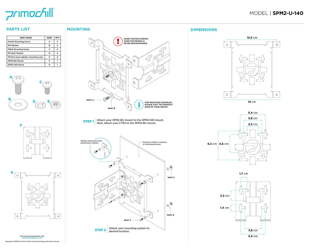 PrimoChill SX Universal Spider Mount Bracket Kit - 140mm Series is an optional mounting system for 140mm fan / radiator locations. The Spider Mount base works on the bottom of cases and side panels. This bracket enables you to mount a multitude of components in various orientations on a 140mm fan location. The vertical bracket allows for 90 degree rotation of your component and extends loop options. The bracket uses a slotted mounting pattern design that allows for very flexible compatibility. The bracket has a sturdy SX powder coated finish that is easy to match to any theme with the huge selection of colors available.