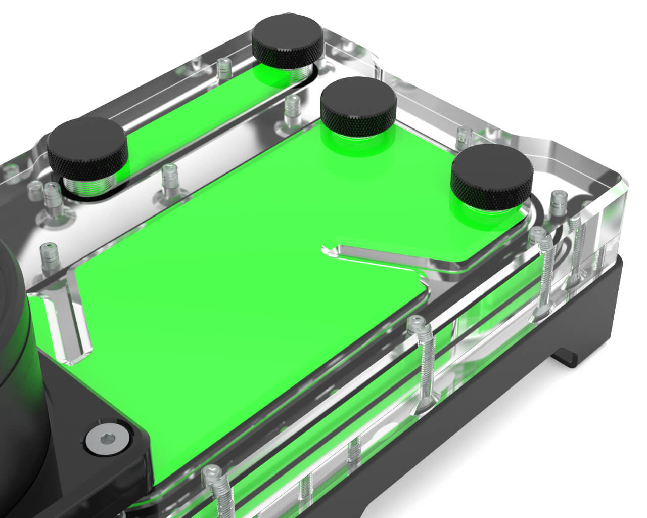 *Deionized water (sold separately) offers low conductivity. Distilled is also acceptable, but will result in a more conductive coolant.